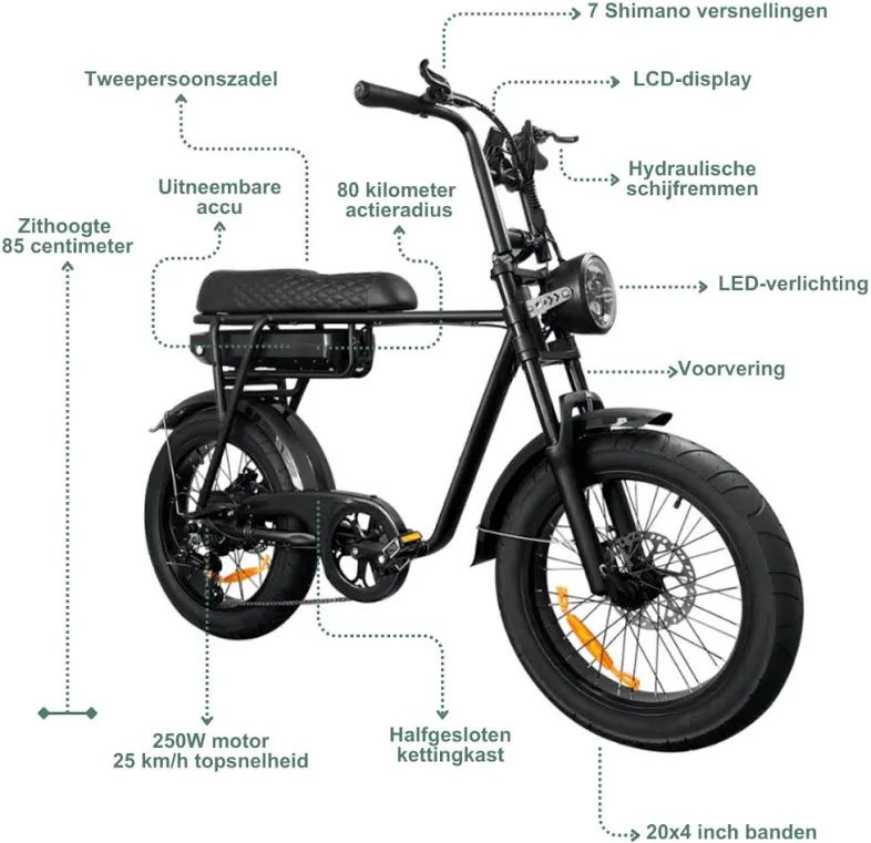 Deze robuuste fatbike combineert kracht, veiligheid en comfort. Met een betrouwbare motor, ruime accu en hoogwaardige componenten is hij ideaal voor zowel stadsritten als langere tochten.