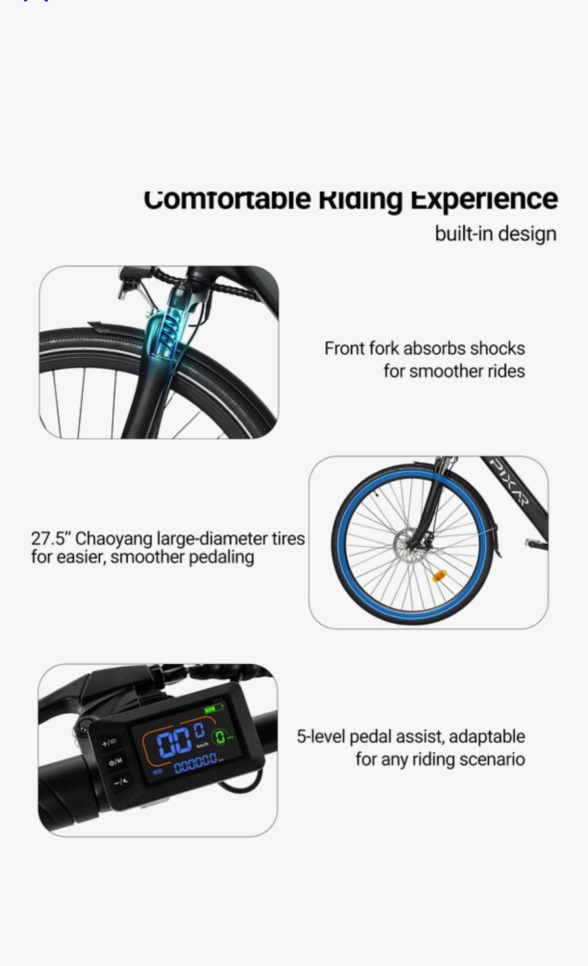 De Pixar City1 biedt comfortabele en betrouwbare elektrische ondersteuning voor dagelijks gebruik in de stad. Dankzij de krachtige motor, duurzame accu en stabiele remmen geniet je van een soepele en veilige rit.